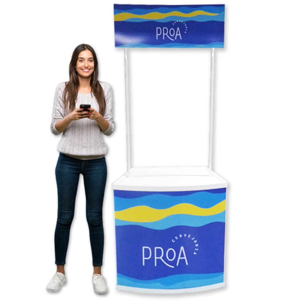 O Balcão de PVC Modelo 80C combina praticidade, resistência e apresentação profissional para destacar sua marca em feiras, eventos, degustações e ações promocionais. Produzido em PVC de alta qualidade, é leve, fácil de montar e desmontar, garantindo transporte rápido e armazenamento simples. Com design funcional e espaço adequado para exposição e atendimento, é a solução ideal para promover produtos e serviços com impacto visual.